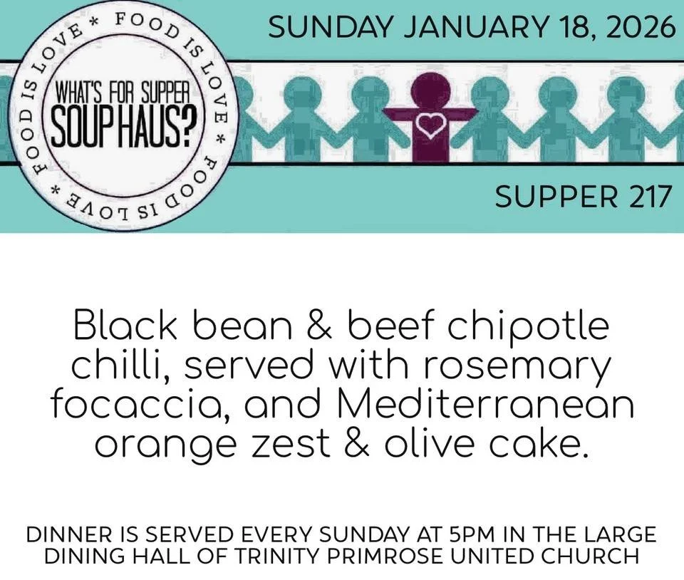Providing a FREE dinner for anyone in our community. Please register in advance at facebook.com/souphausrestaurant